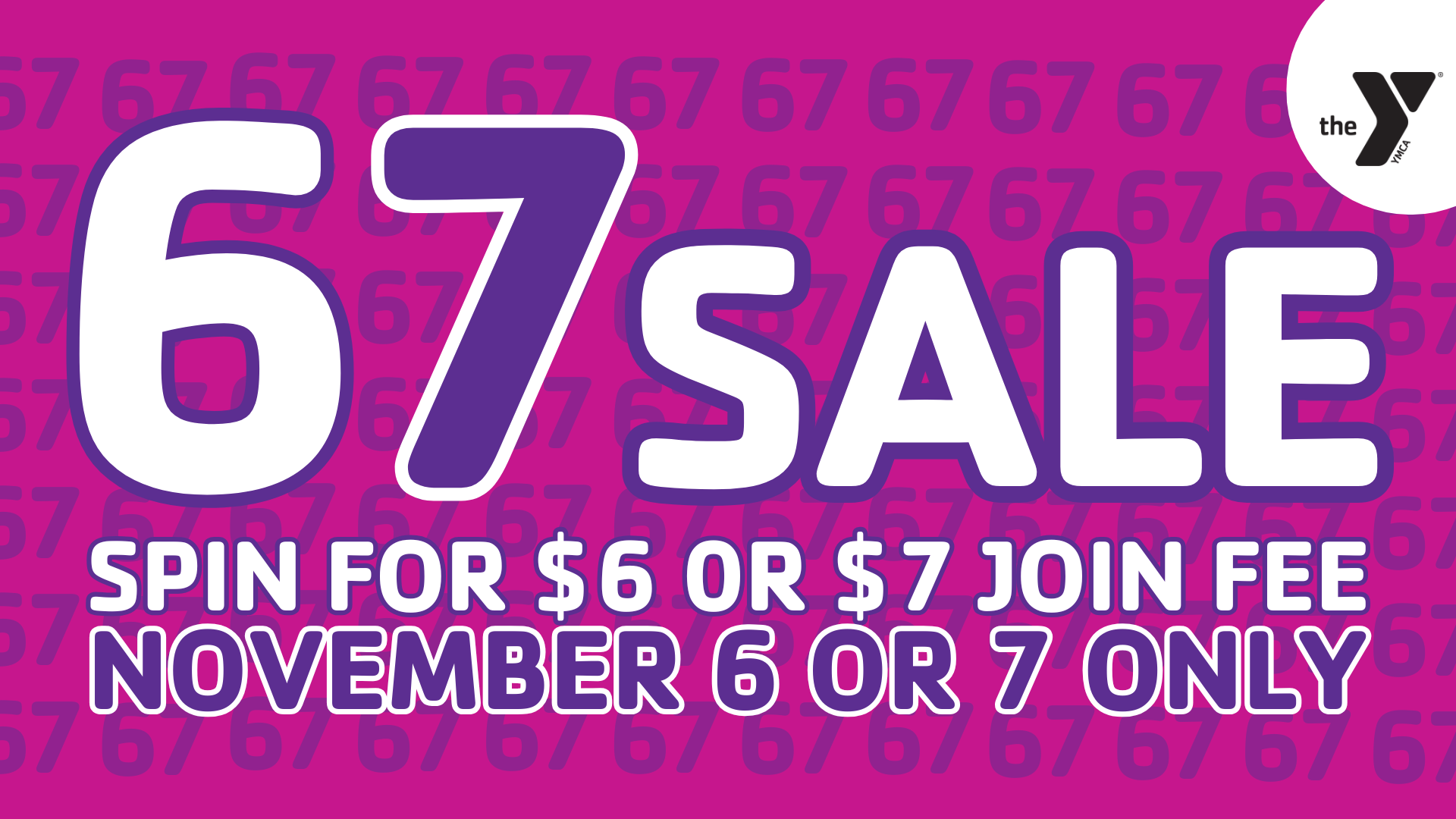 Join the Y on November 6 or 7 and SAVE. Simply stop by one of our four YMCA of Rock River Valley branches to spin the wheel. Only pay $6 or $7 for the join fee—more than $40 in savings! The 67 sale is only available when you sign up in person.