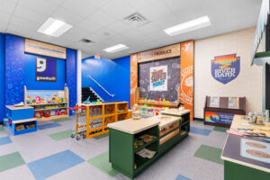 The Kids’ Care entrance moved to the main lobby to make it more convenient for families, and includes an accessible ramp. The transformation began in May, when the Kids’ Care team moved into temporary spaces to allow renovations to begin. They will now return to a space that reflects the care, creativity, and community spirit for which the YMCA stands.